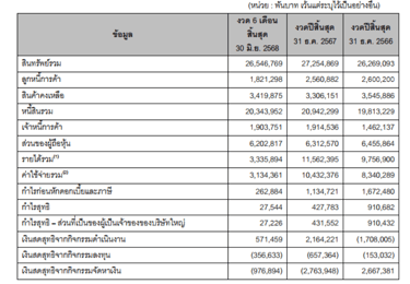 6 เดือน ปี 2568: เป็นบวก (571 ล้านบาท)